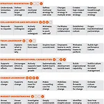 조직의 생존과 효율을 유지하기 위한 요청에 대해 최고 리더십이 어떤 결정을 내릴 때 일차적인 기준이 되는 것은 ‘전략과 문화’이다. 전략은 그 회사의 목적과 지향점에 사람들이 머물도록 하기 위한 논리를 제공하고, 문화는 가치와 신념을 통해 목적을 표현하고 공유된 전제와 규범을 통해 활동의 지침을 제공한다. 전략은 조직의 행동과 의사결정에 명확성을 부여하고 집중해야 하는 분야를 정해준다. 전략은 사람들을 움직이게 하는 기획과 일련의 선택에 의존하고 목표달성에 대한 보상과 목표달성 실패의 결과 둘 다에 의해 강화된다. 이상적으로 전략에는 외부 환경을 관찰/분석하고 연속성과 성장을 유지하기 위해 필요한 변화를 감지할 수 있는 적응 요소들이 포함되어 있다. 리더그룹은 전략 구상 부서를 항상 곁에 두고 있으며 ..